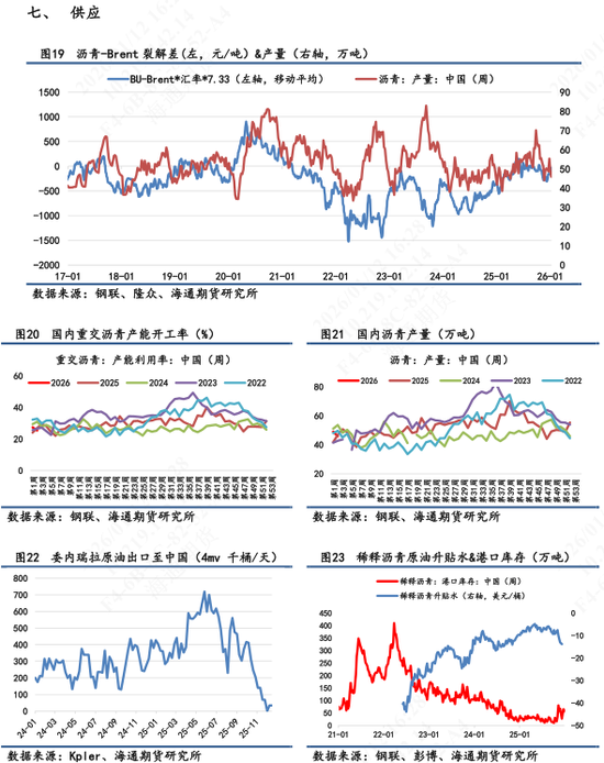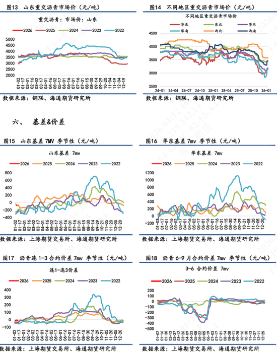 【2】现货市场:①山东重交沥青市场价为3080元/吨,环比持平,7天累计+4.4%。山东基差为-60元/吨,7天累计+12元/吨。②华东重交沥青市场价为3200元/吨,环比持平。华东基差为+60元/吨,7天累计-8元/吨。
