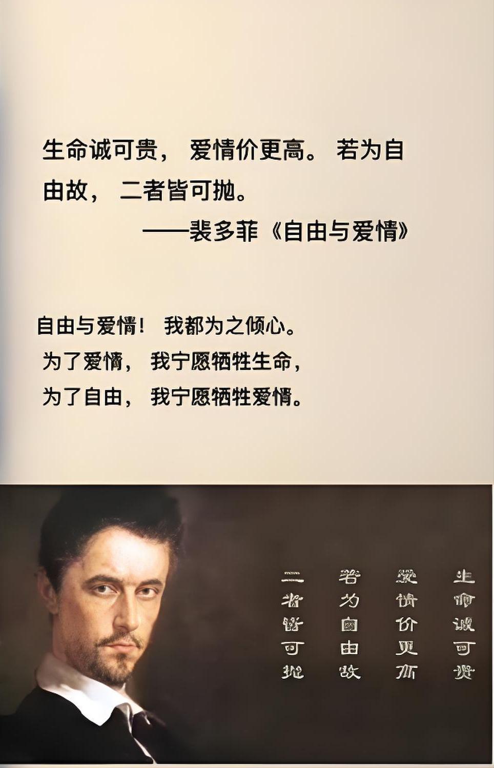 那句传遍大江南北的诗:生命诚可贵,爱情价更高,若为自由故,二者皆可抛,就是出自他手。